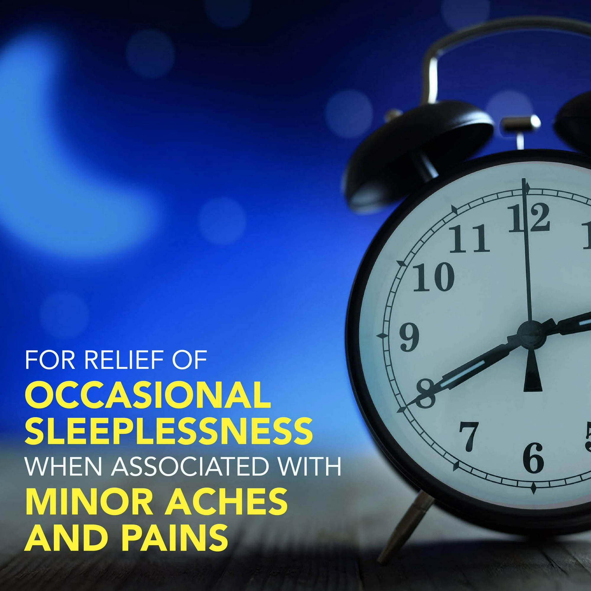 Nighttime sleep aid: This product contains a combination of a nighttime sleep-aid and a pain reliever (NSAID) that provides relief of occasional sleeplessness when associated with minor aches and pains
